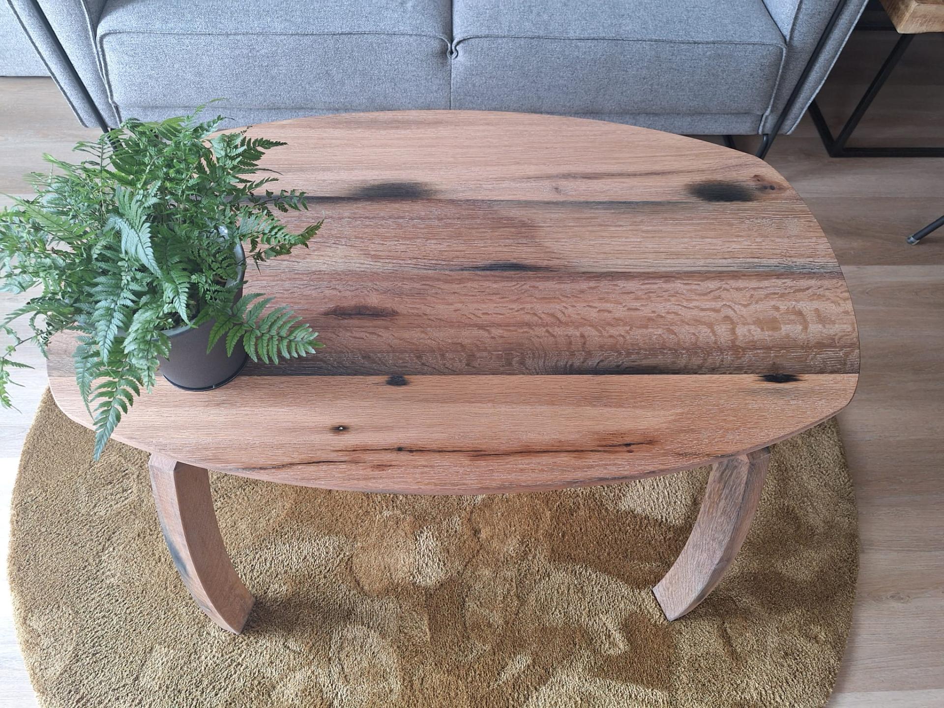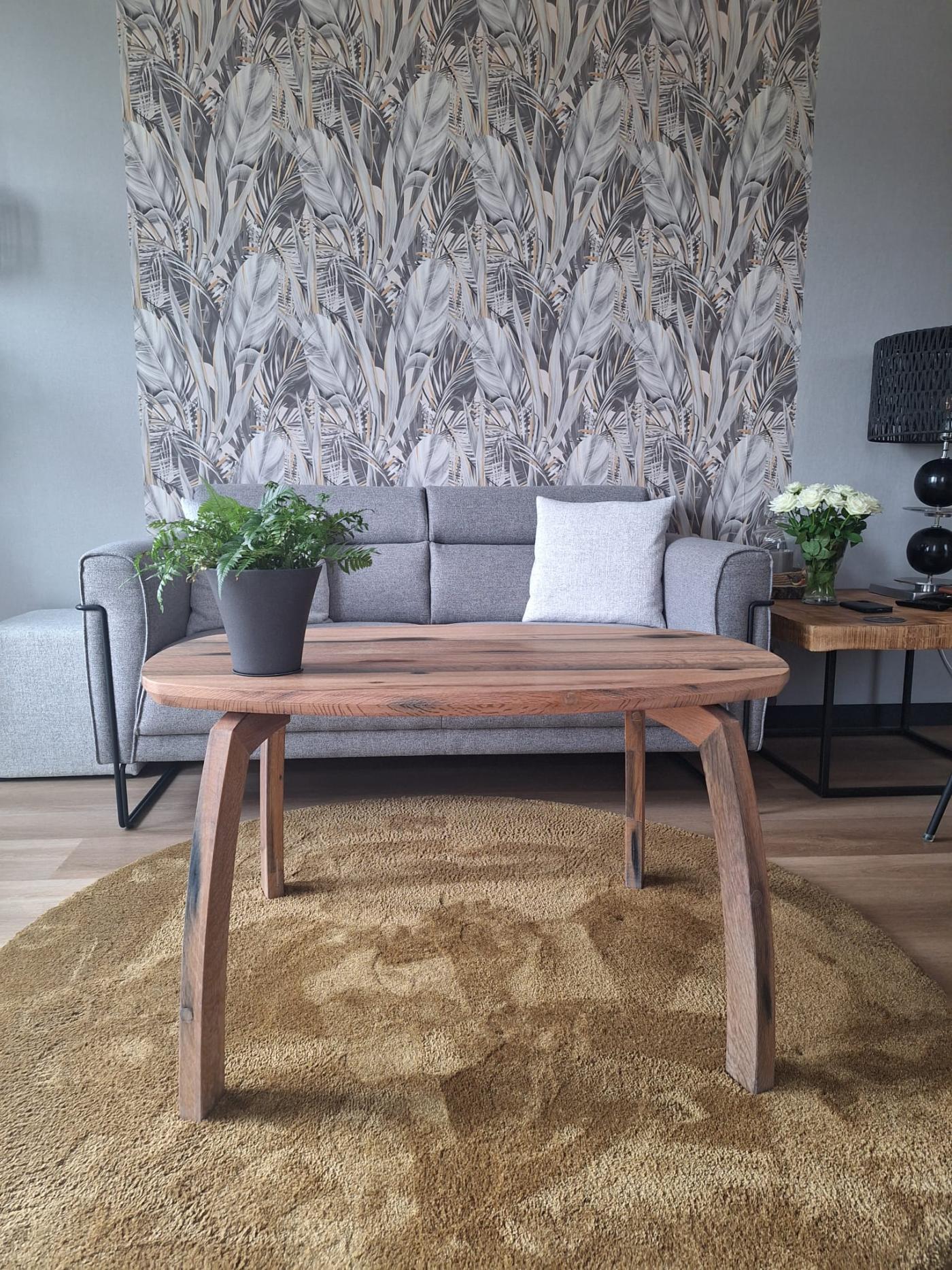 Deze salontafel in deens ovale vorm is een subtiele blikvanger met een verhaal. De vorm valt precies tussen rechthoekig en ovaal in: elegant afgerond, maar met voldoende rechte lijnen voor een rustige uitstraling. Een ideale vorm voor wie op zoek is naar zachtheid zonder in te leveren op stabiliteit en plaatsing.